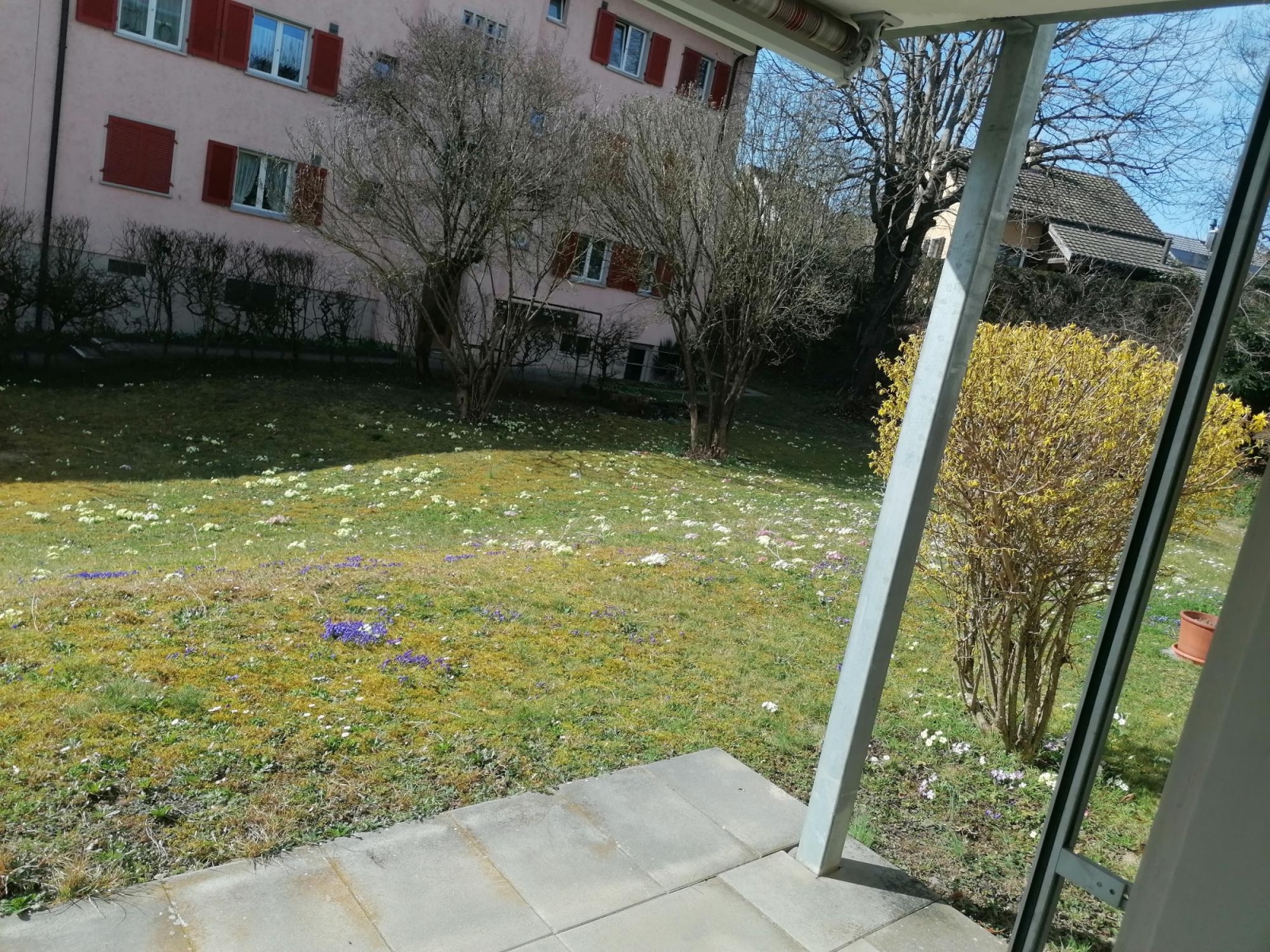 - Die Wohnung verfügt über einen sonnigen überdachten Sitzplatz mit Sonnenstoren.