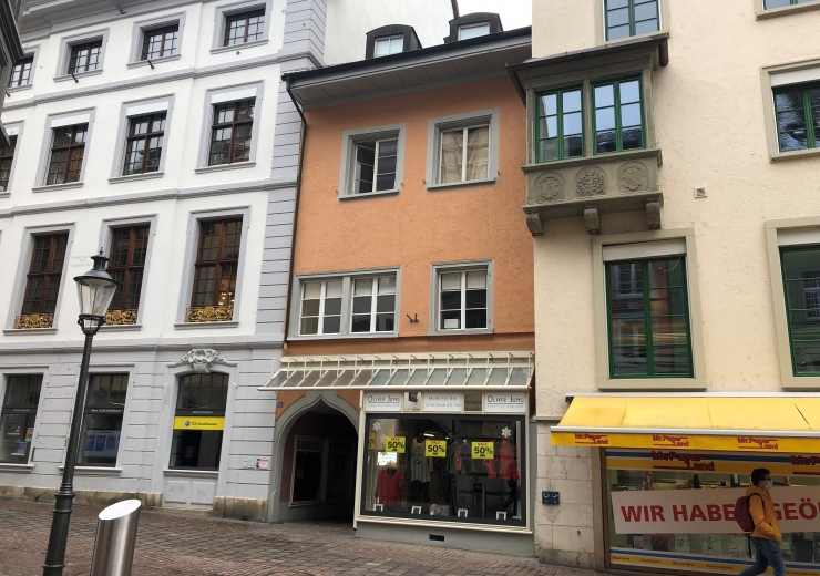 Grosser, beleuchteter Schaukasten mitten im Zentrum/Altstadt von Schaffhausen an der beliebten Einkaufsmeile Vordergasse direkt bei SHN (Schaffhauser Nachrichten) im Tunnelgässchen.